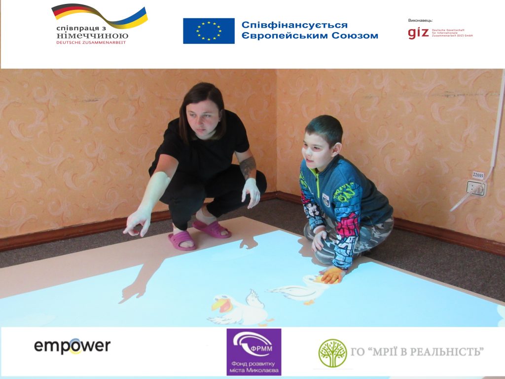 В рамках його реалізації Березанський інклюзивно — ресурсний центр від ГО «Фонд розвитку міста Миколаєва» отримав інтерактивну підлогу програмно-апаратного комплексу корекційно-психологічної роботи.