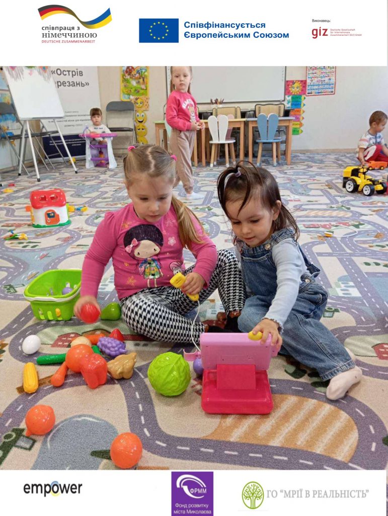Реалізовуючи проєкт «Крок в майбутнє через сьогодення», спрямованого на розвиток та збереження ментального здоров’я дітей Березанської громади, 27 травня фахівці Центру життєстійкості провели захід з елементами ігротерапії та арттерапії для вихованців дитячого садочка «Сонечко». В своїй роботі психологині вдало скористались добіркою корисних ігор для дітей в укриттях, раніше розробленою представницями ГО «Мрії в реальність» в рамках цього ж проєкту.