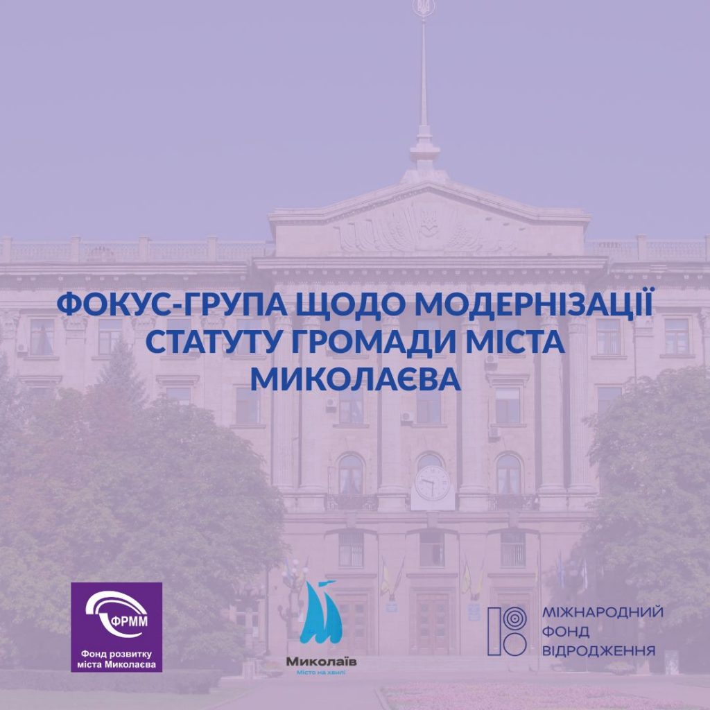 Розробка Статуту Миколаївської міської територіальної громади відбувається за підтримки Міжнародного фонду «Відродження» в рамках проєкту ФРММ «Дієва місцева демократія у Статутах двох громад Миколаївщини».