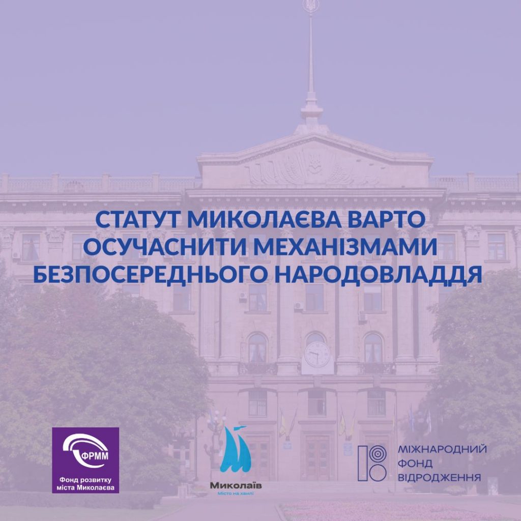 Розробка Статуту Миколаївської міської територіальної громади відбувається за підтримки Міжнародного фонду «Відродження» в рамках проєкту ФРММ «Дієва місцева демократія у Статутах двох громад Миколаївщини».