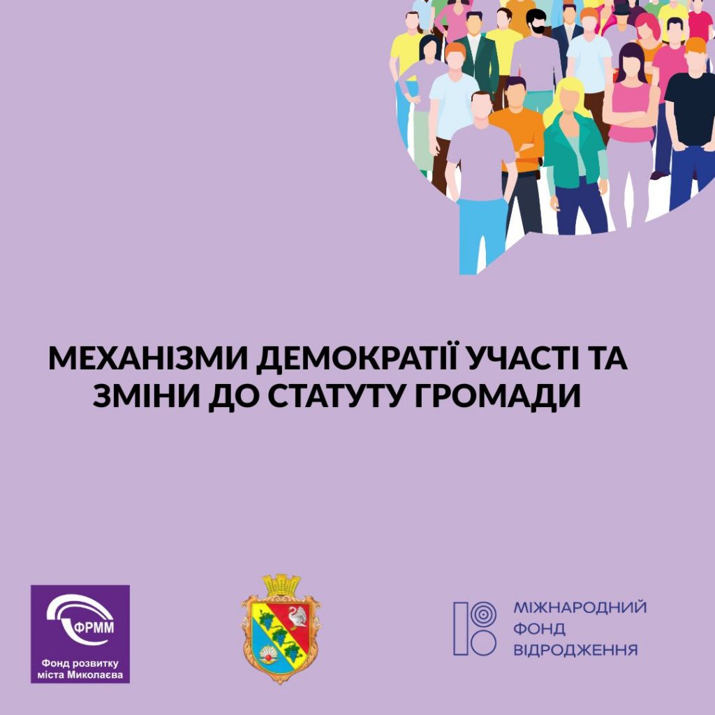 У Миколаївській міській громаді робоча група також готує оновлений механізмами демократії участі Статут міської територіальної громади. Реліз на http://frgn.mk.ua/?p=15263 .