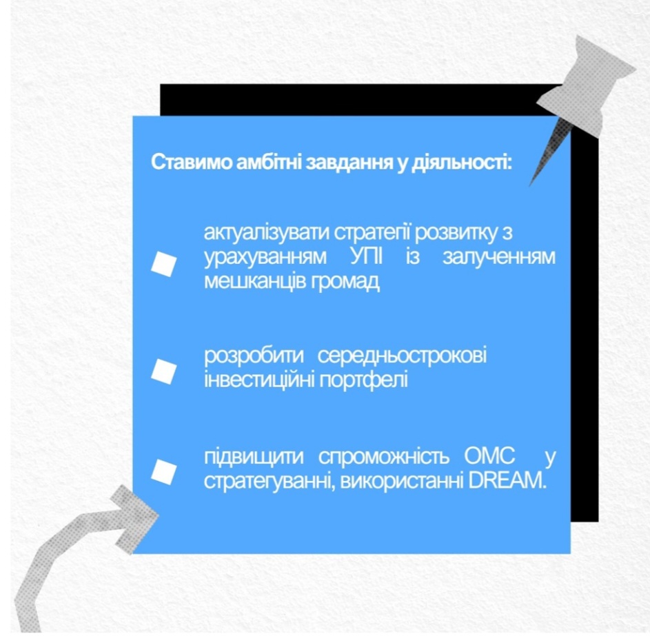 Маємо на меті створити місцеві інвестиційні портфелі — інструменти, що перетворюють локальні ідеї на реальні проєкти з потенціалом державного і міжнародного фінансування.